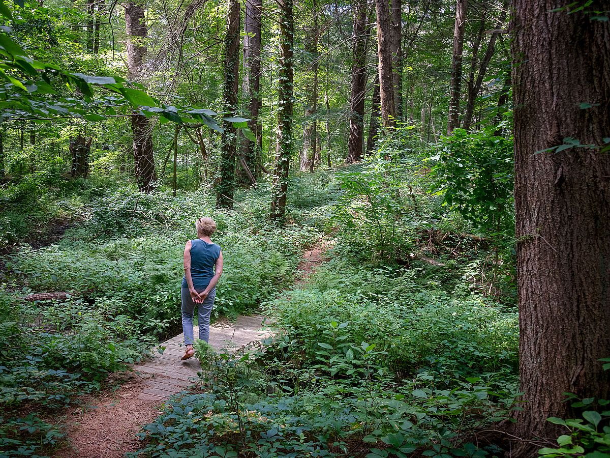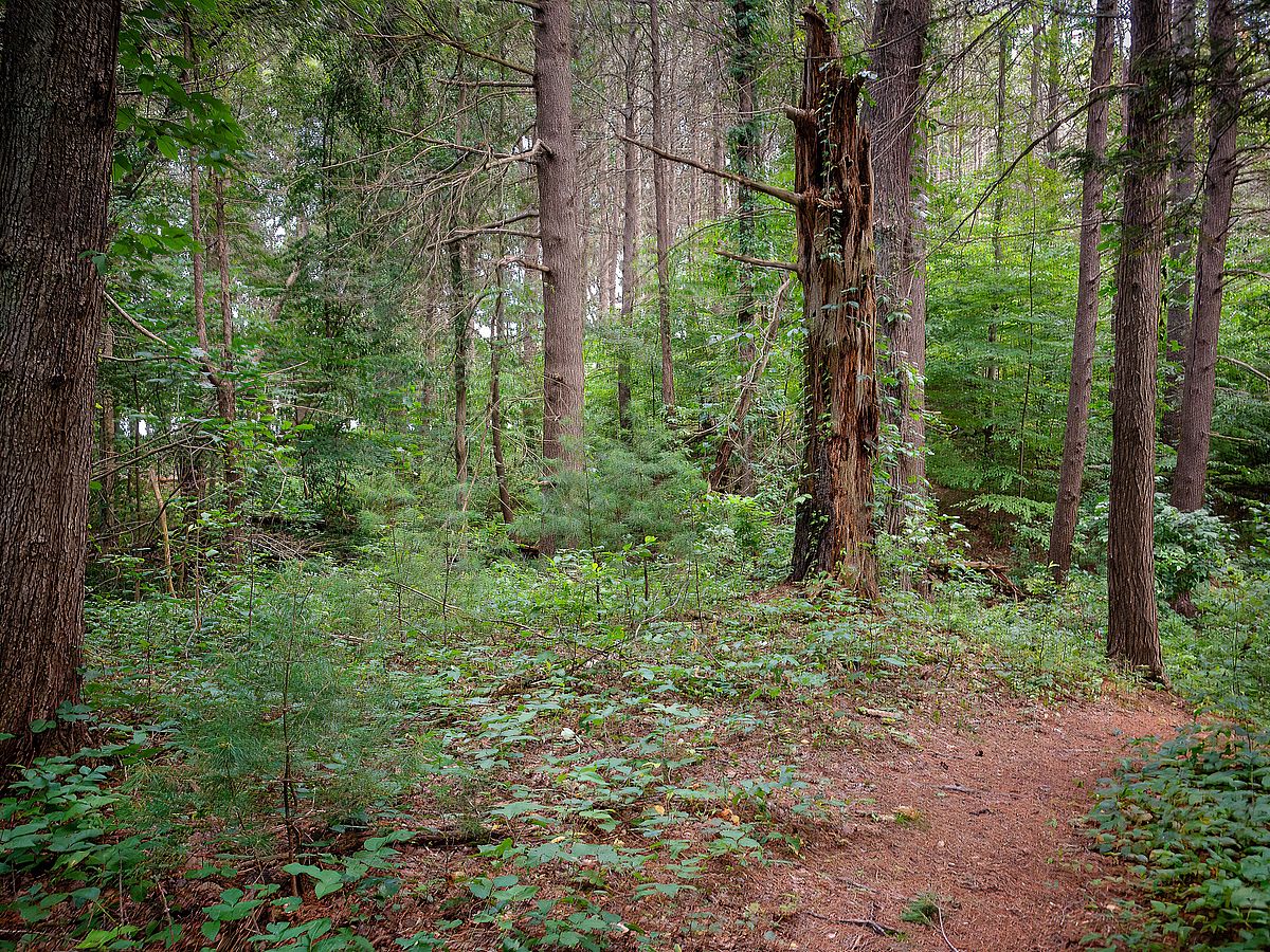 A short, wooded loop trail takes hikers to a beautiful view of Wenham Lake.