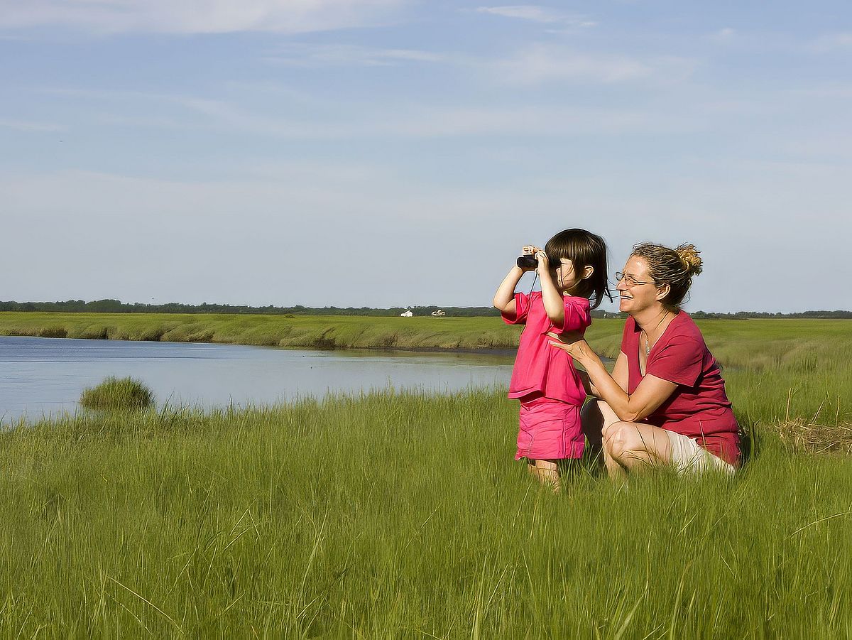 This sanctuary supports an exceptional diversity of birds and mammals. It also serves as critical migratory bird habitat and important breeding grounds for many species of birds, fish, and crustaceans. Bring binoculars to observe an array of songbirds along the wooded trails; shorebirds, egrets and herons in the salt pannes; and an Osprey nest from Sawyer’s Island.